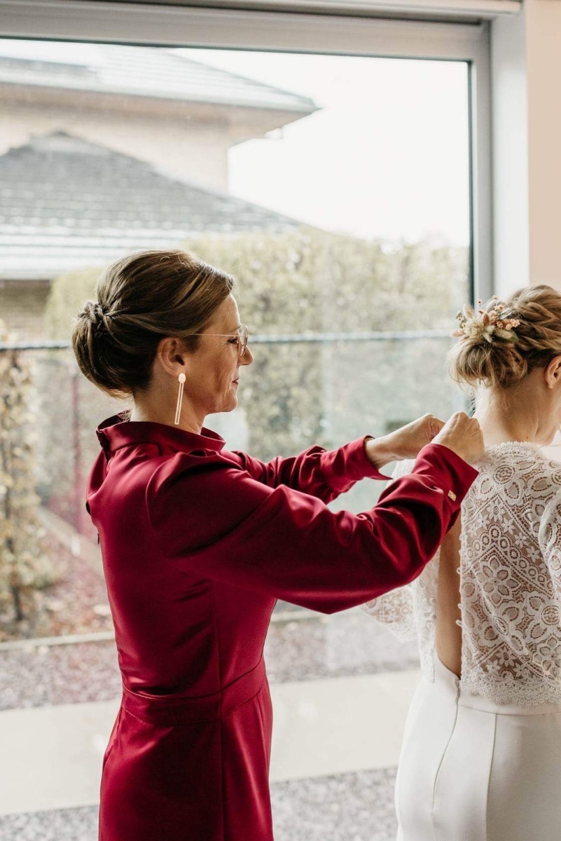 Elke jurk ontstaat uit zorgvuldig gekozen stoffen, verfijnde lijnen die het vrouwelijk silhouet omarmen en een afwerking die met de hand en met liefde wordt gerealiseerd.