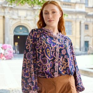 De Hannah blouse kan in verschillende versies gemaakt worden zodat ze echt helemaal je ding is! Je kan kiezen tussen een recht doorgesneden of een schuin ingesneden voorpand. De brede, gefronste mouw geeft een meer zomerse en romantische look, terwijl de lange mouw net iets neutraler is. Aan de halsuitsnijding kan je een lintje toevoegen als leuk detail. Je kan ook een leuk paspellint tussen de boven- en zijstukjes stikken. Dit patroon werd oorspronkelijk gelanceerd voor Simply Sewing Magazine in het Verenigd Koninkrijk, maar met enkel het recht doorgesneden voorpand. Deze versie heeft dus als extra het 2de voorpand.
