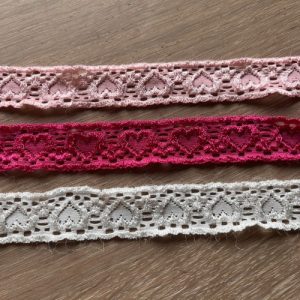 Elastisch lint met bloemmotief /2.2cm breed/ in wit, roos en fuschia