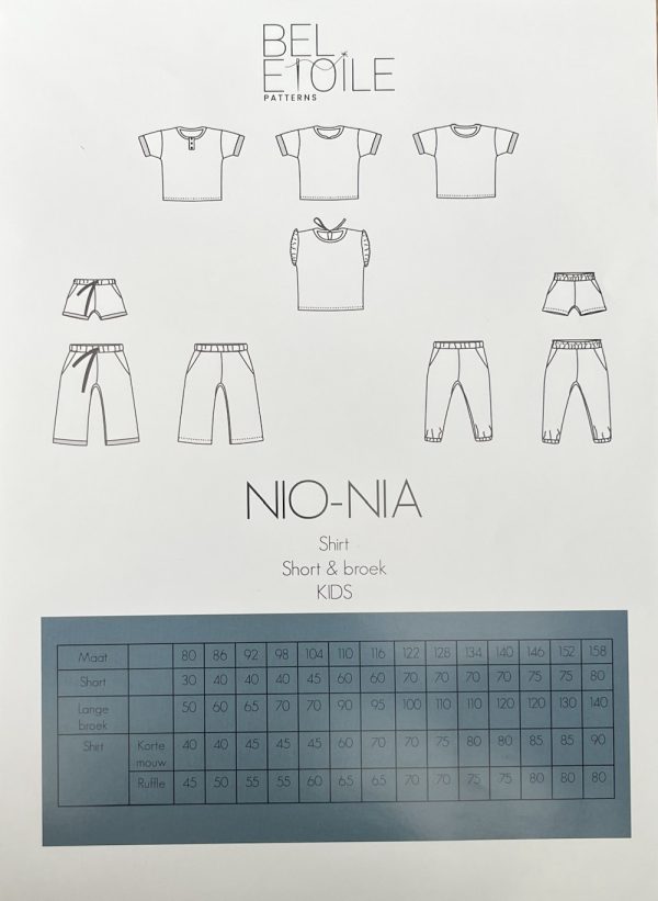 -het patroon op 2 gevouwen A0 pagina’s in maten 80, 86, 92, 98, 104, 110, 116, 122, 128, 134, 140, 146, 152 en 158