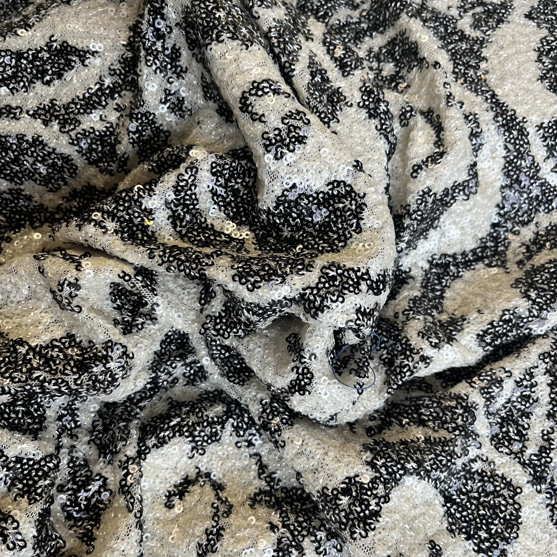 Pailletten zwart wit op tulle