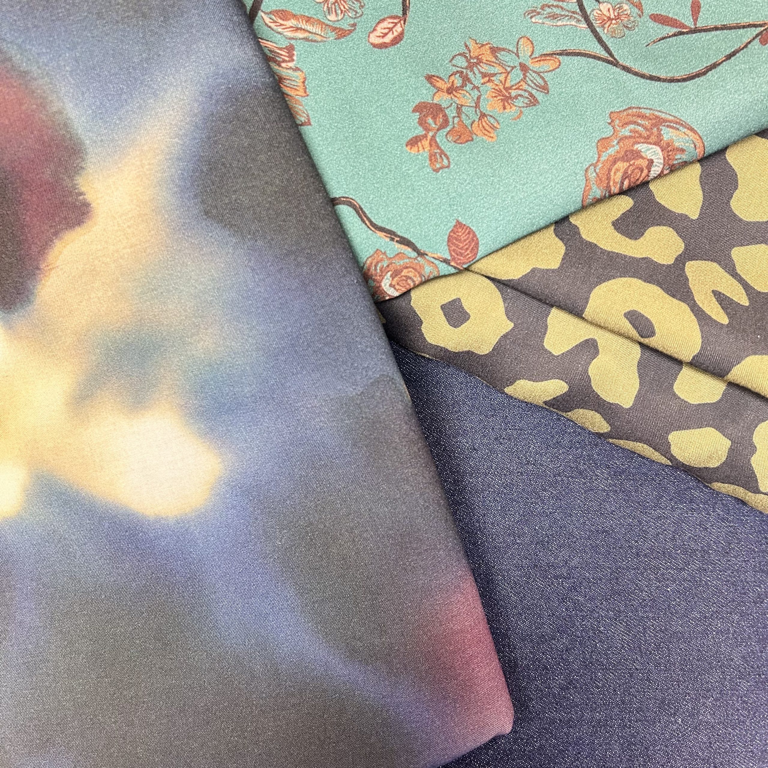 Een leuk pakket waarbij een zalige jeanskwaliteit wordt gecombineerd met mooie stoffen om een top of blouse uit te ontwerpen.