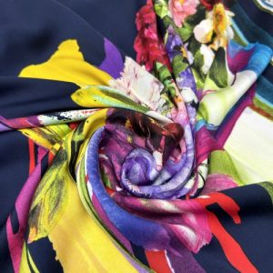 Fijne lichtblauwe viscose met kleine bloemenprint