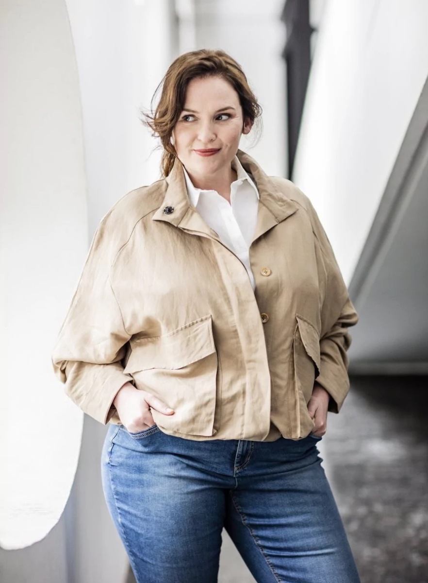 Avril bevat een opstaande kraag met een mouwinzet en mooie polsboorden. Daarnaast worden zeer mooie zakken opgestikte zakken toegevoegd.