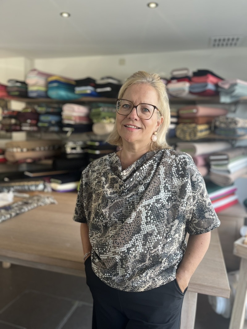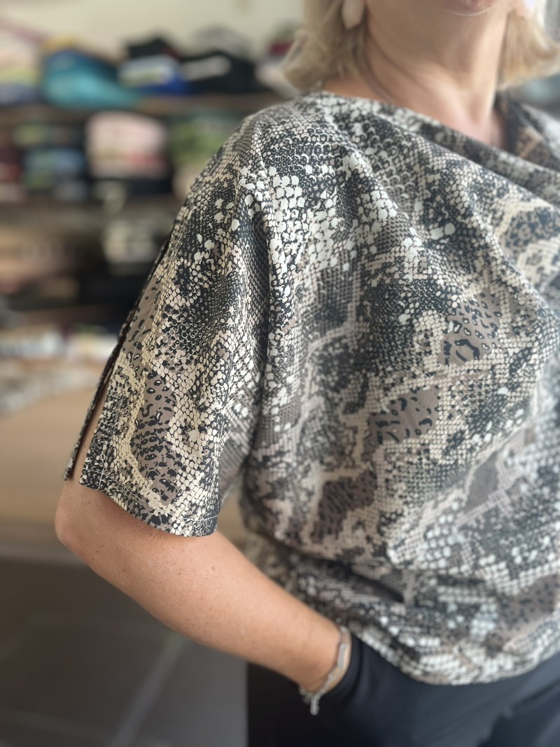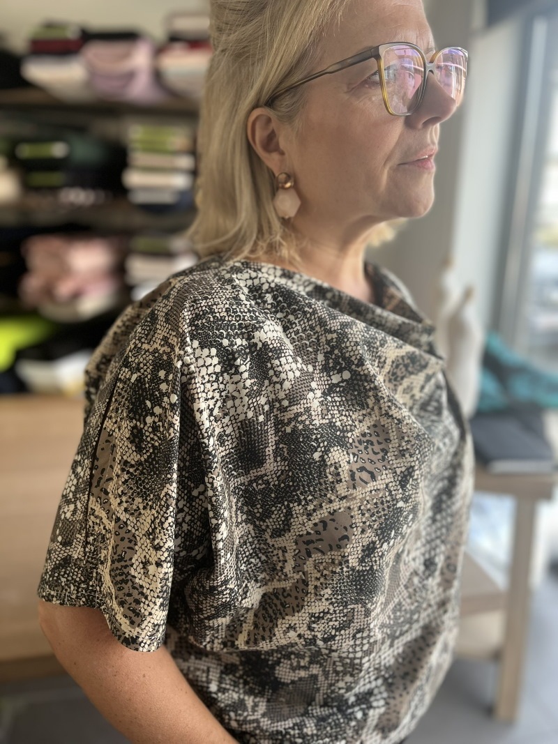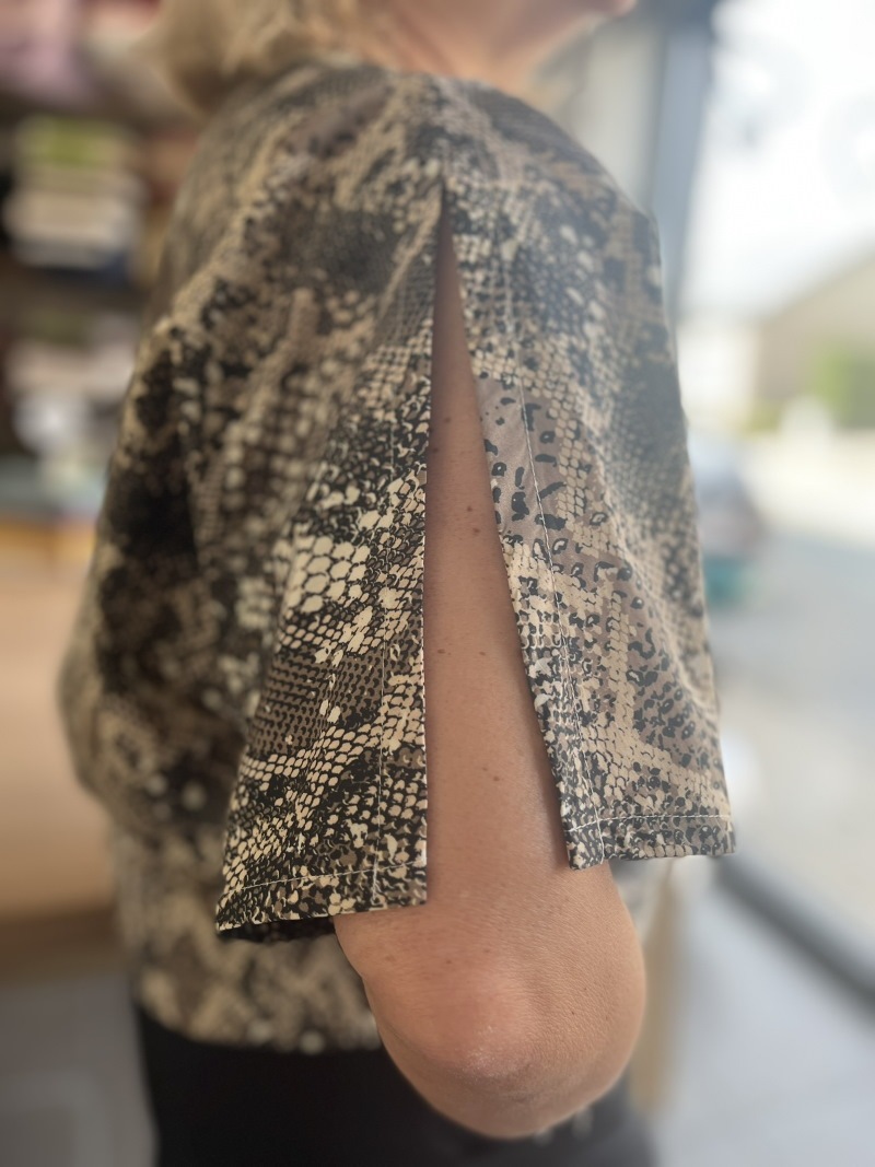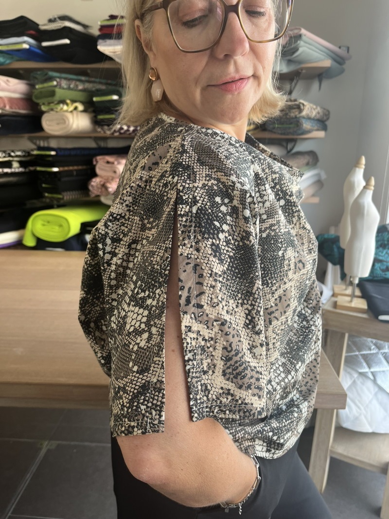 De blouse is ontworpen met een waterval en een mooie split aan een zijde van de mouw. Tijdens deze workshop leren we opnieuw enkele specifieke technieken aan met aandacht voor een mooie afwerking.